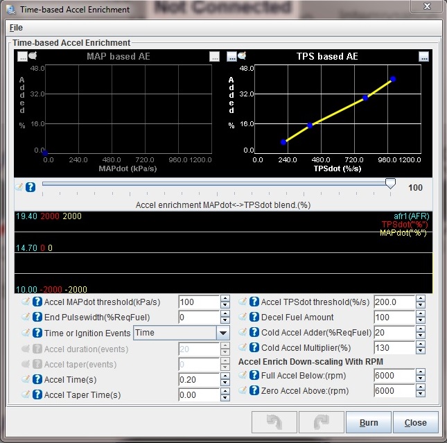 Accel or Accel Enrich → Accel-Pump Accl Enrichment Settings